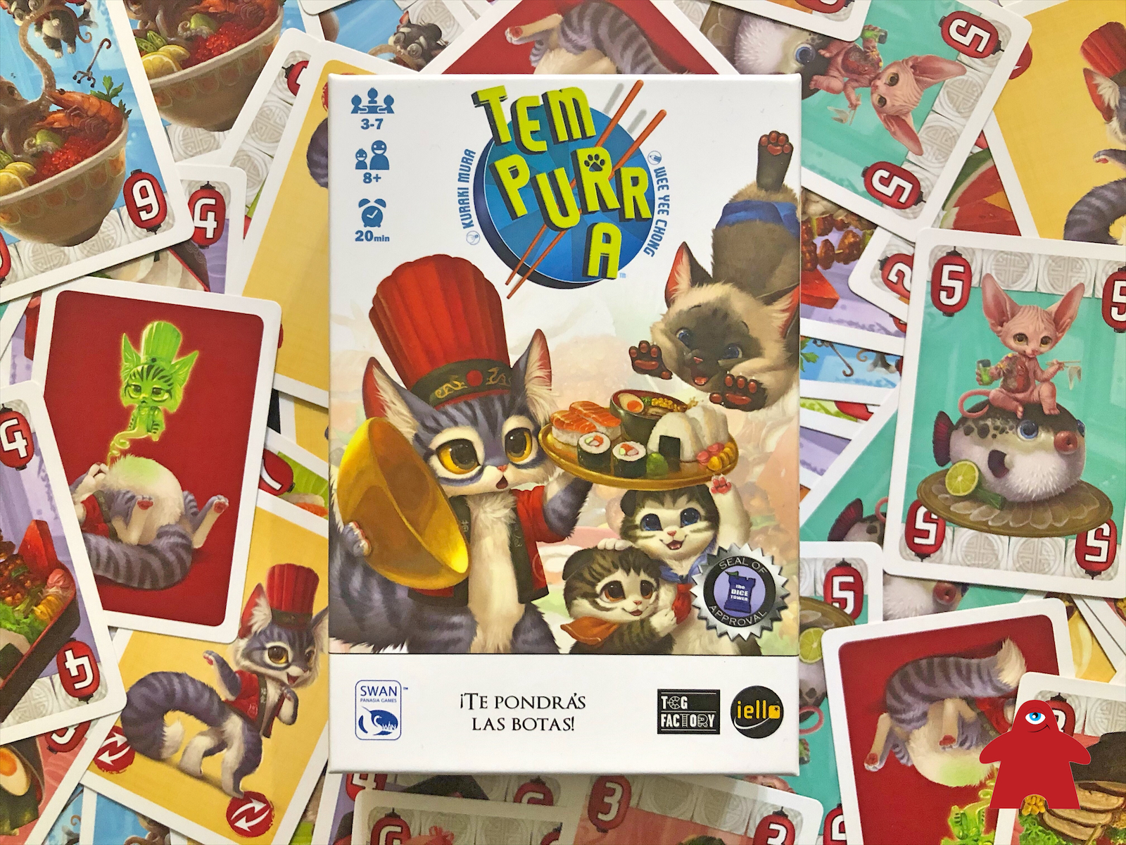 Una selección de expertos gatunos culinarios se reúne para ver quién es capaz de comer la mayor cantidad de comida japonesa y no coger una indigestión en el intento. ¿Serán capaces? Lo sabremos jugando a TEMPURRA, un juego de Kuraki Mura que publica en castellano TCG Factory. Tenemos MicroCuJReseña publicada en nuestro blog.