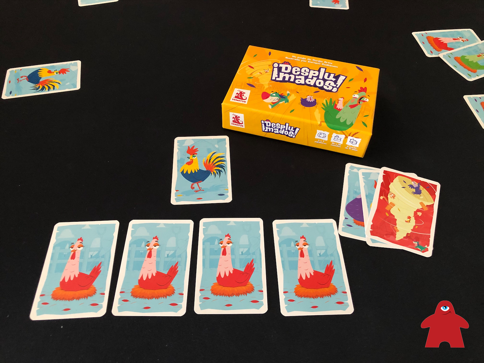 DESPLUMADOS es un juego de Sergio Ortiz editado por Venatus Ediciones en el que tendremos que recuperar a todas las gallinas que se han escapado de nuestra granja debido a un fuerte temporal que ha destrozado el tejado, siendo muy observadores para recuperar a nuestras gallinas y no a otras aves que se quieren hacerse pasar por ellas y teniendo mucho cuidado de los zorros hambrientos que las están acechando.