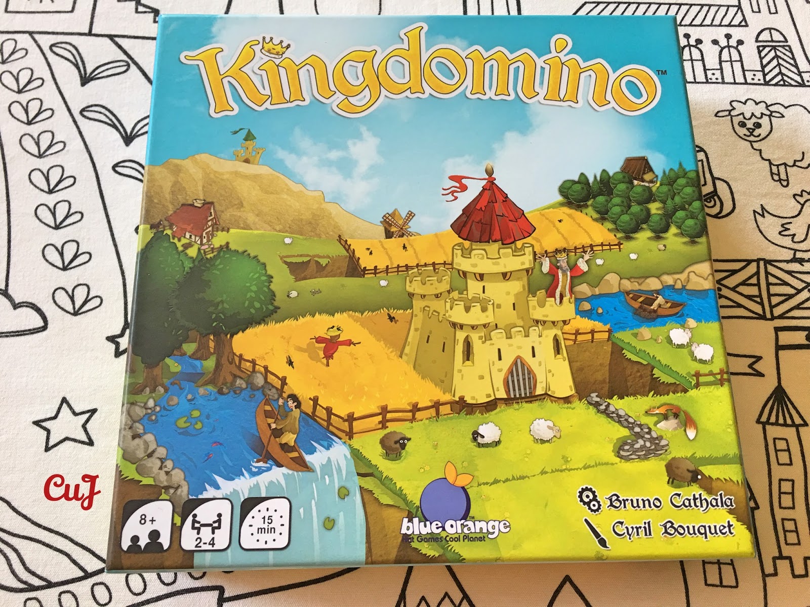 Kingdomino es un juego en el que tendremos que explorar nuevas tierras para expandir nuestro reino a partir de un castillo inicial, mediante colocación de losetas con forma de fichas de dominó de diversos tipos: desierto, mar, prado, bosque, montaña y mina, y todas ellas con una numeración, que va del 1 hasta el 48, dependiendo de la importancia de las mismas. En el primer turno se colocarán tantas losetas como número de jugadores, y en orden de menor a mayor teniendo en cuenta su numeración. y al azar se coloca uno de los meeples de cada jugador sobre cada una de ellas. Posteriormente, se colocarán una nueva tanda de losetas ordenadas como se hizo anteriormente y entonces comenzará eligiendo el jugador con la loseta del turno anterior con el número más bajo, (excepto en partidas de 2 jugadores que se colocarán 4 losetas, y cada jugador tendrá dos elecciones). Una vez que hemos hecho ya nuestra elección, la loseta en la inicialmente estaba nuestro meeple la podemos trasladar a nuestro reino.