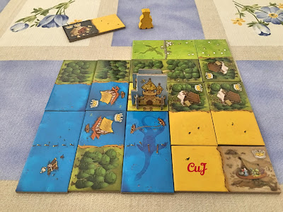 -además ganas 10 puntos si tu castillo queda en el centro del reino, y 5 puntos adicionales más si consigues colocar todas las losetas. Este reino nos daría pues 37 puntos.