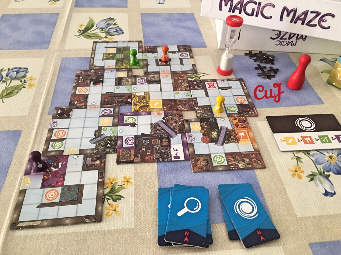 Magic Maze: Cuatro héroes, un elfo, un bárbaro, un enano y un mago, han perdido todas sus posesiones tras su última aventura. Ahora se les presenta una nueva, y tienen que conseguir de nuevo todo su equipo, y deciden ir a robarlo a un centro comercial. Nuestra misión consiste en ayudar a nuestros héroes a rearmarse y a su posterior huída sin que sean descubiertos por la seguridad del centro. Magic Maze es un juego cooperativo de 1 a 8 jugadores.