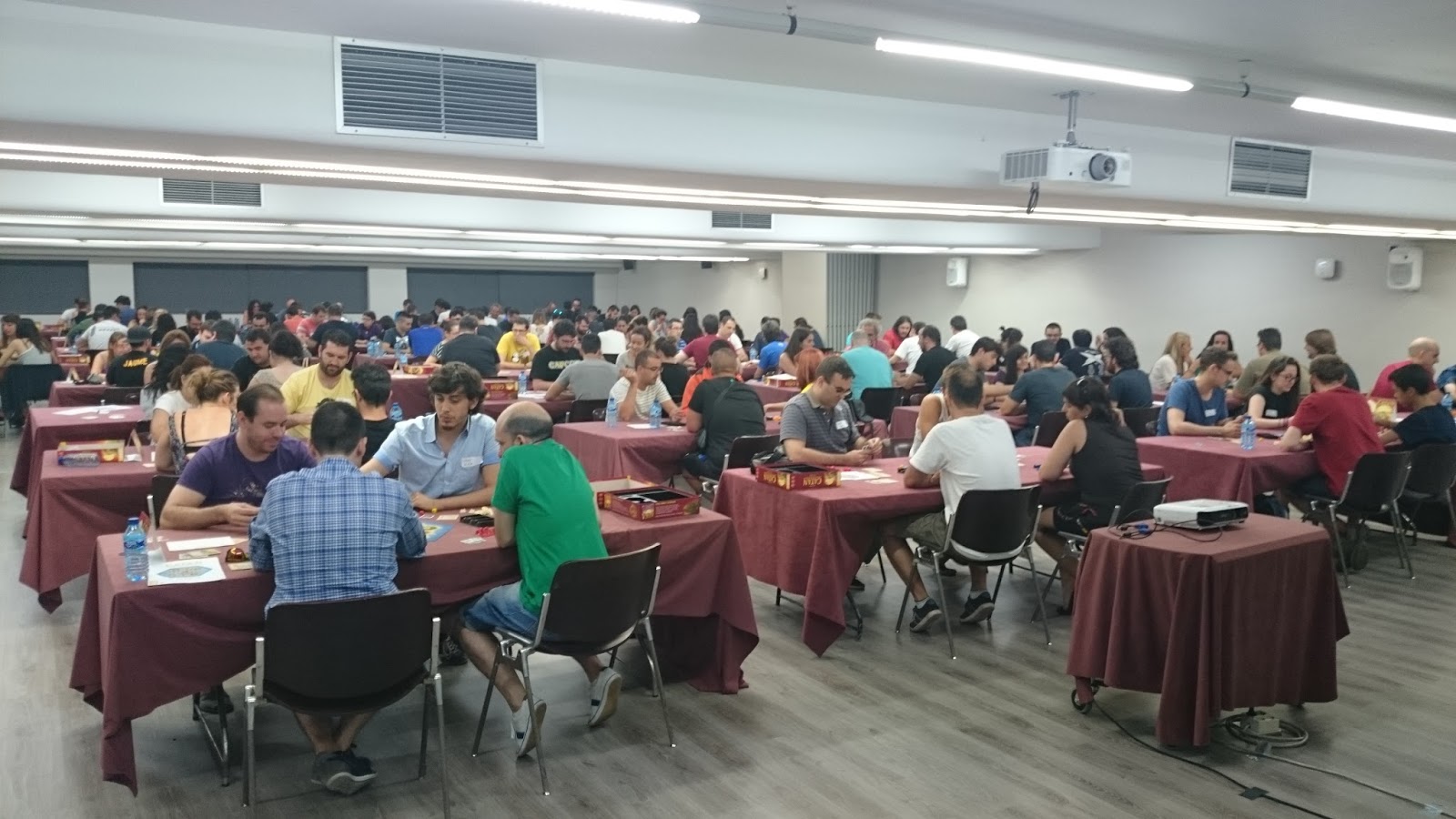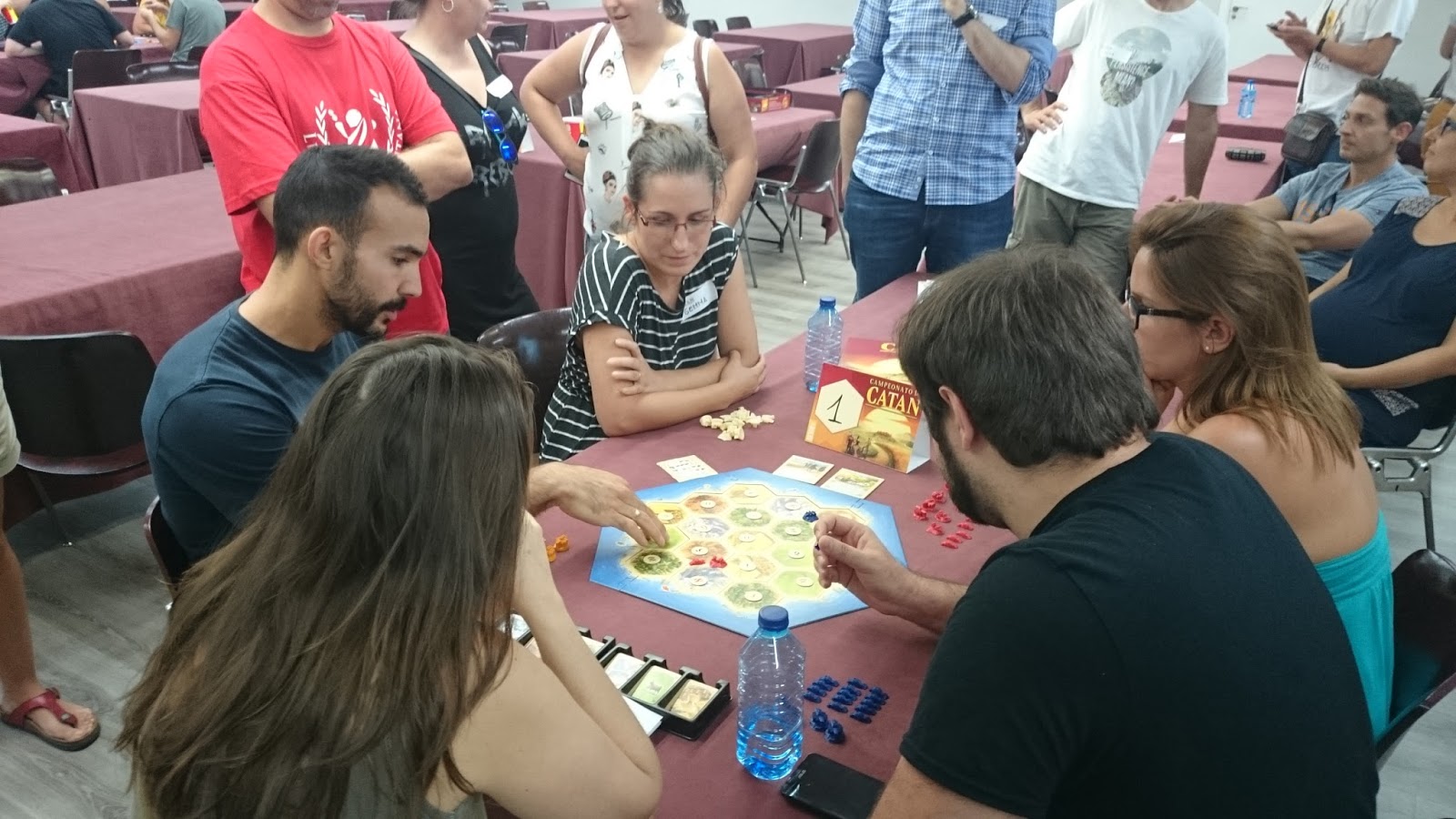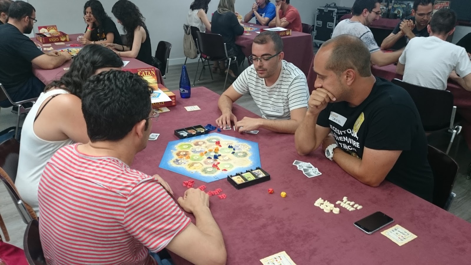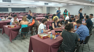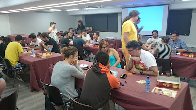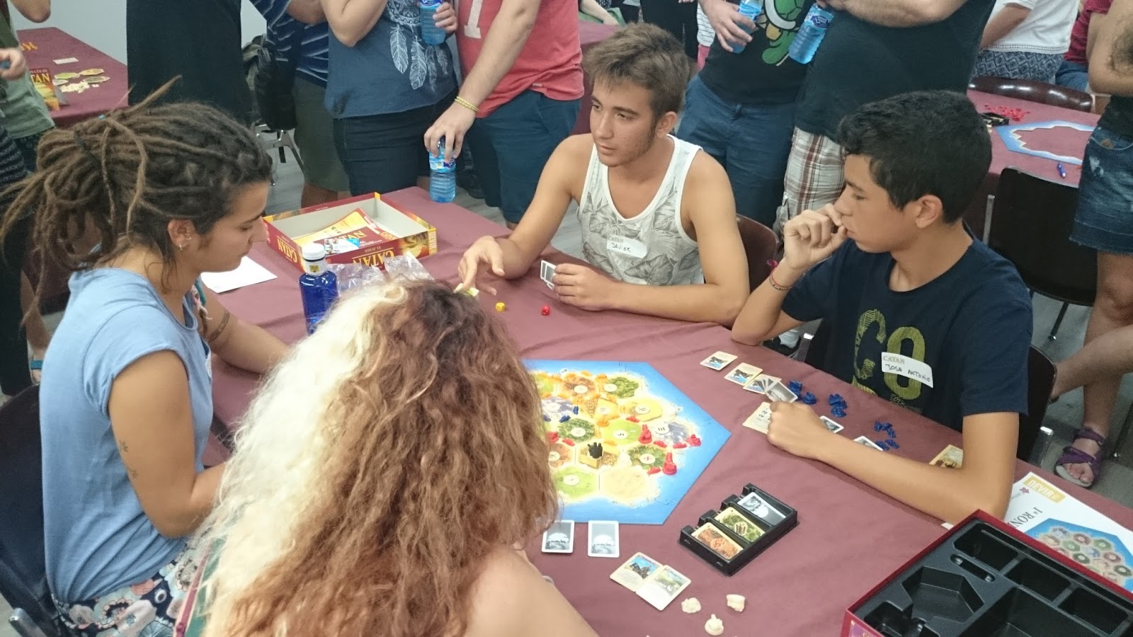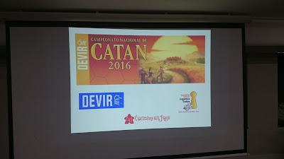 Además, desde el año 2007, primero en Mollina en el marco de las Jornadas Tierra de Nadie, y desde 2012 en Madrid, venimos participando en el Campeonato Nacional de Colonos de Catán, y la verdad que la suerte nos ha sonreído en varias ocasiones, con tres primeros puestos y dos subcampeonatos, aunque con el paso de los años se ha vuelto más complicado y cada vez es más difícil clasificarse incluso para jugar el torneo. Cada vez hay más y muy buenos jugadores, (algo que nos alegra mucho). Y así hasta nuestra última participación en 2015, Este año no teníamos previsto estar por diversas circunstancias personales, Pero recibimos una llamada de nuestros amigos y colaboradores de Devir Iberia para ver si podíamos ayudar en la preparación y arbitraje del evento, y por supuesto, no nos pudimos negar. Devir Iberia es nuestro principal colaborador y se ha implicado de lleno en nuestro proyecto educativo.