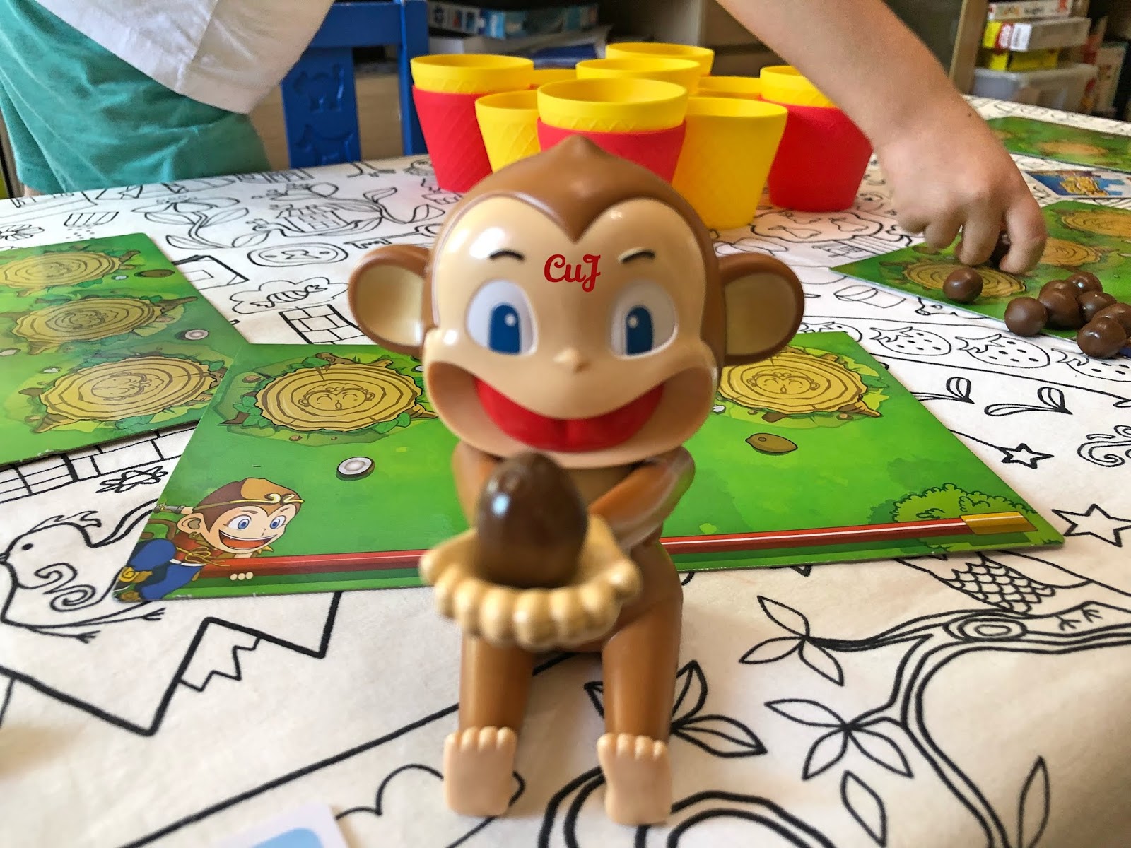 COCOS LOCOS: Un juego de Walter Schneider editado en España por Maldito Games. Un divertido juego de destreza y habilidad donde tenemos que acumular el mayor número de cubiletes posibles utilizando a nuestros monos expertos lanzadores de cocos.