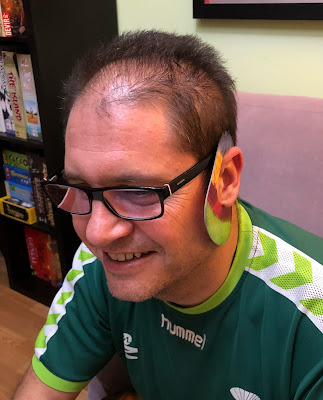 … con la introducción del tema de tener que memorizar las piezas de orejas colgantes que nos ponemos para así poder deshacernos de las mismas si tenemos ocasión de ello. Así que lo vemos como una vuelta de tuerca muy divertida de este tipo de juegos y que nos ha parecido muy a destacar. Concluimos que la principal capacidad cognitiva que trabajamos con este juego es la memoria.