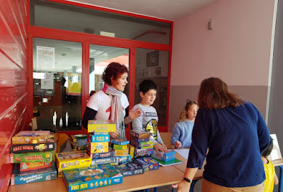 -Delimitamos una zona de préstamo para que las familias se acercaran a solicitar un juego. Según el número y sobre todo la edad de los peques les hacíamos una recomendación que se llevaban a las mesas.