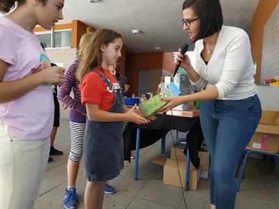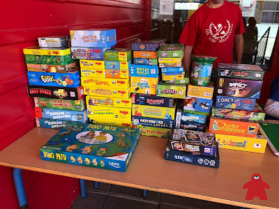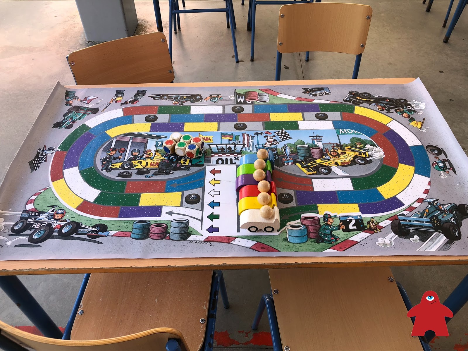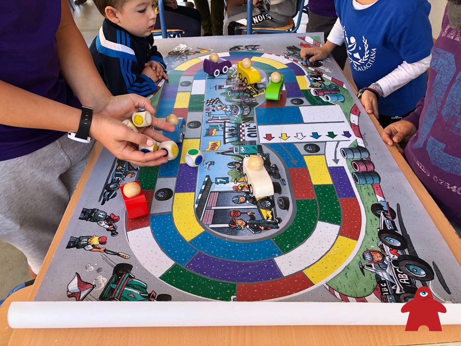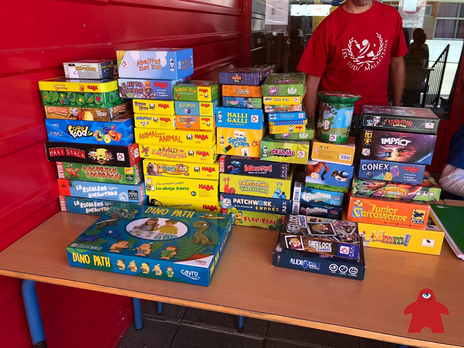 Tenemos que mencionar que pudimos disponer de dos juegos gigantes, (El Cuco Kiko Estrena Nido y Monza), de HABA España que estuvieron presentes en el stand de la editorial de la Caja Amarilla que gestionó Lex Ludi Malacitana en el Festival Internacional de Juegos de Córdoba y que la editorial tuvo a bien cedernos unos días más para poder usarlos en esta actividad.