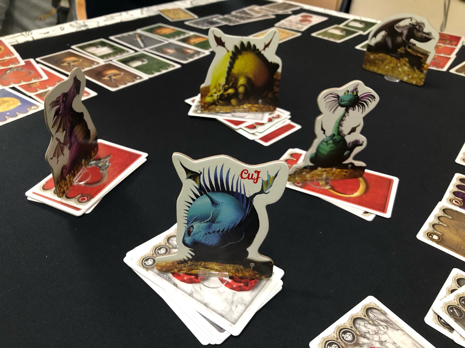 EL TESORO DE LOS DRAGONES. Un juego de Bruno Faidutti, ilustrado por David Cochard y editado por Tranjis Games. De 3 a 6 jugadores, a partir de 7 años de edad y con partidas de 30 minutos. Los dragones se disputan tesoros de todo tipo para poder guardarlos y disfrutarlos en sus cavernas, pero, ¡cuidado! De nada les sirve atesorar tanto si no tienen con qué alimentarse. Aquí podemos ver la MicroCuJReseña que realizamos y la vídeo reseña con nuestros amigos de Frikiguías.