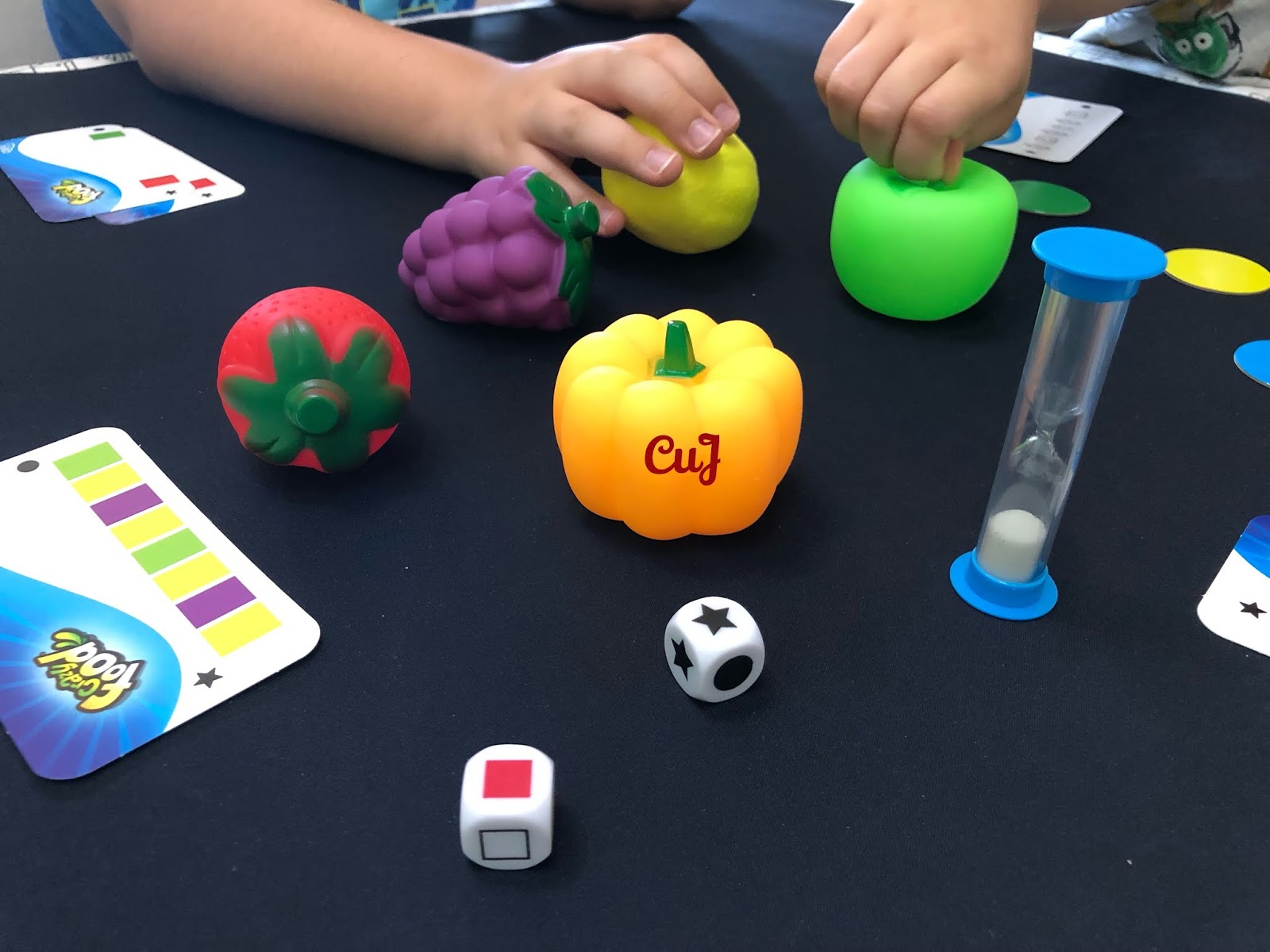CRAZY FOOD. Un juego de Lucía Molina editado por Cayro. De 2 a 4 jugadores, a partir de 6 años y con partidas de 15 minutos de duración. Tenemos que ser los más rápidos en resolver la secuencia de formas o de colores que se nos propone en cada turno para poder atrapar nuestras frutas preferidas.
