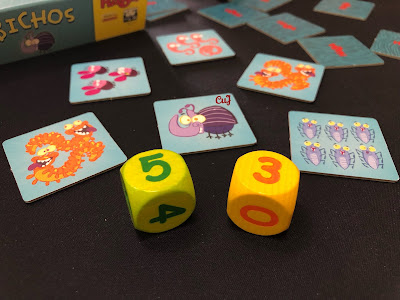 BICHOS. Un juego de Kristin Mückel, ilustrado por Benedikt Beck y editado por HABA España. De 2 a 4 jugadores, a partir de 6 años de edad y con partidas de 15 minutos de duración. Un juego de memoria y cálculo mental en el que tenemos que atrapar el mayor número de bichitos posible.