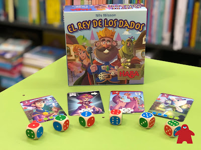 EL REY DE LOS DADOS. Un juego de Nils Nilsson editado en castellano por HABA España. De 2 a 5 jugadores a partir de 8 años de edad. Desempeñamos el papel de un Rey con un territorio sin habitantes y lo que tenemos que conseguir es atraer población a nuestro reino. Para hacerlo atractivo y que vengan muchos tendremos que gestionar tiradas de dados que coincidan con los gustos y preferencias de los futuros habitantes. Para saber más podemos leer la excelente reseña de Tang de Naranja.