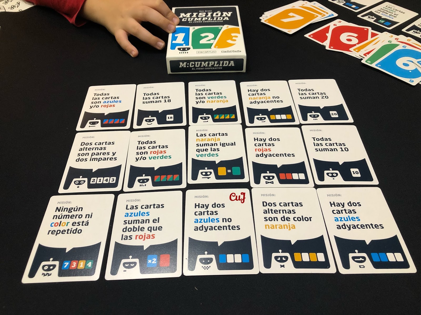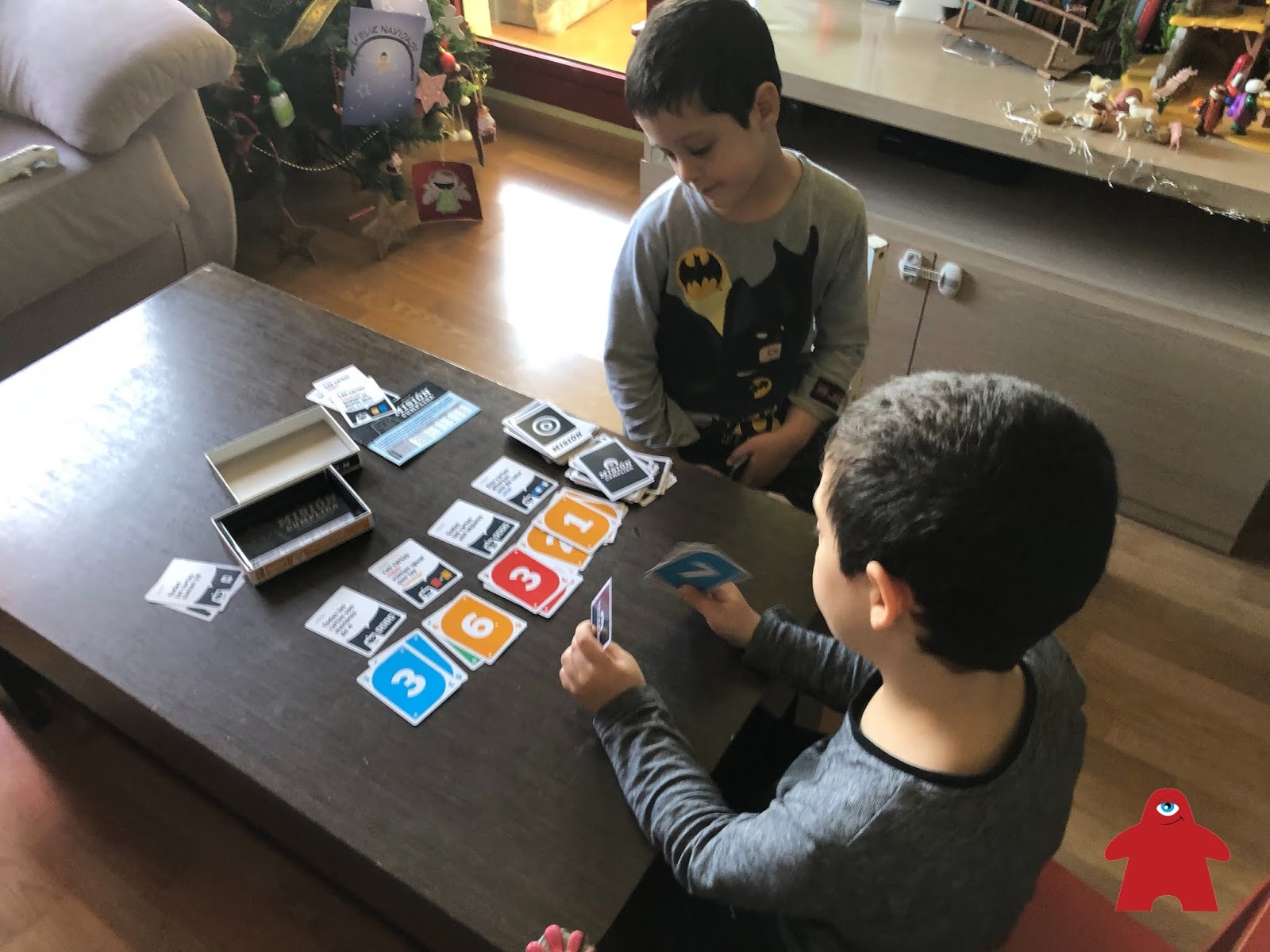 Misión Cumplida ha caído de pie en casa de Cuéntame un Juego. Se ha convertido en un auténtico reto en casa y en pocos días hemos jugado muchas partidas, incluso Iván se ha atrevido a jugar en solitario. Es más, Lucas y Héctor también se animan a jugar ellos solos, aunque, citando sus propias palabras, «papi quitamos las misiones en las que hay que multiplicar y dividir porque aún no sabemos«. Se refieren a las misiones en las que hay que cumplir objetivos de «el doble de» o «la mitad de».