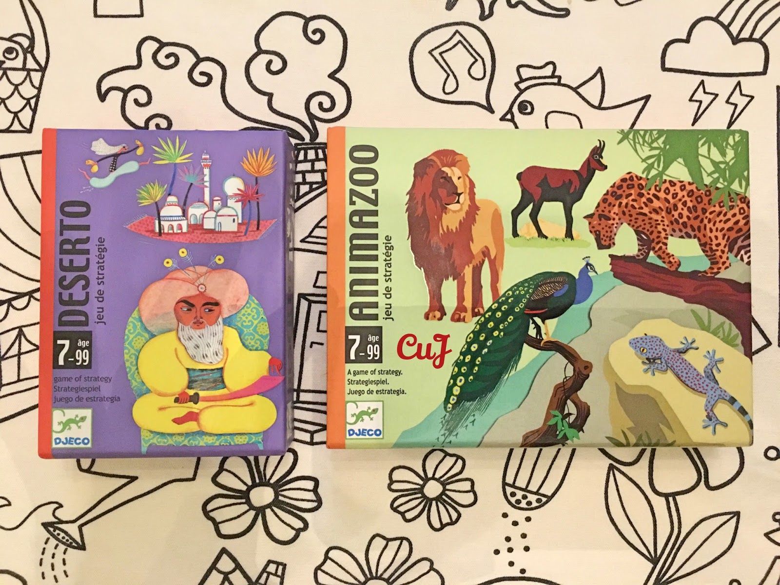 En primer lugar comenzamos con dos nuevas adquisiciones de la editorial Djeco. Juegos de cartas de carácter infantil y que son recomendables para la toda la familia: Deserto y Animazoo.