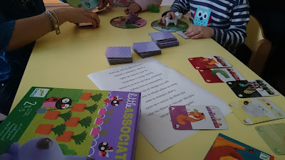 El pasado miércoles 30 de marzo dimos un paso más en nuestro proyecto lúdico educativo. Sabéis que Cuéntame un Juego lo conforman dos familias numerosas, y uno de ellas, en este caso del que forma parte este que escribe, tiene, (tenemos), dos hijos mellizos aún en edad preescolar, vamos, que acuden a la guardería. y como ya a Héctor y Lucas se les ha despertado el interés por los juegos de mesa, (pobres, ¡qué remedio tienen!), pensamos que a lo mejor podría ser interesante realizar un taller de juegos en su guardería, 5 Chupetes Centros Infantiles. Aprovechamos que el centro, entre su amplia oferta de actividades complementarias, cuenta con un Taller de Lectura, nos pusimos en contacto con la responsable del mismo, Ana, que a su vez es la psicopedagoga del centro, y le planteamos la posibilidad de hacer un taller con juegos adecuados a su edad, y otros que siendo para más grandes podríamos adaptar el reglamento para ellos. Tras pedir permiso a la dirección del centro y recibir su visto bueno para poder adaptar el Taller de Lectura a un Taller de Juegos de Mesa, nos pusimos manos a la obra para prepararlo. Y por fin llegó el gran día.