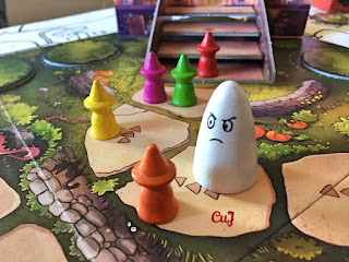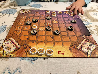 Es un juego de Martin Schlegel editado en castellano por Tranjis Games, para 2 jugadores y a partir de 8 años. En la Noche de los Muertos los difuntos la celebran con los vivos, pero tras los festejos cada uno debe regresar a su correspondiente lugar, y tendremos que ayudarles a llegar antes del alba. ¿Quién lo hará antes? Un juego sencillo de aprender pero cargado de estrategia en el que debemos de calcular muy bien nuestros movimientos.