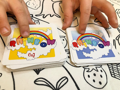 Como nos quedamos con ganas de más, y como no nos dio tiempo a usarlo en el taller, cuando llegamos a casa jugamos a Rainbow de Átomo Games.