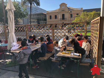 En principio, el taller lo íbamos a realizar en el interior del local, pero dada la mañana tan estupenda que hacía en la Capital de La Costa del Sol, decidimos que era obligado jugar en el exterior.