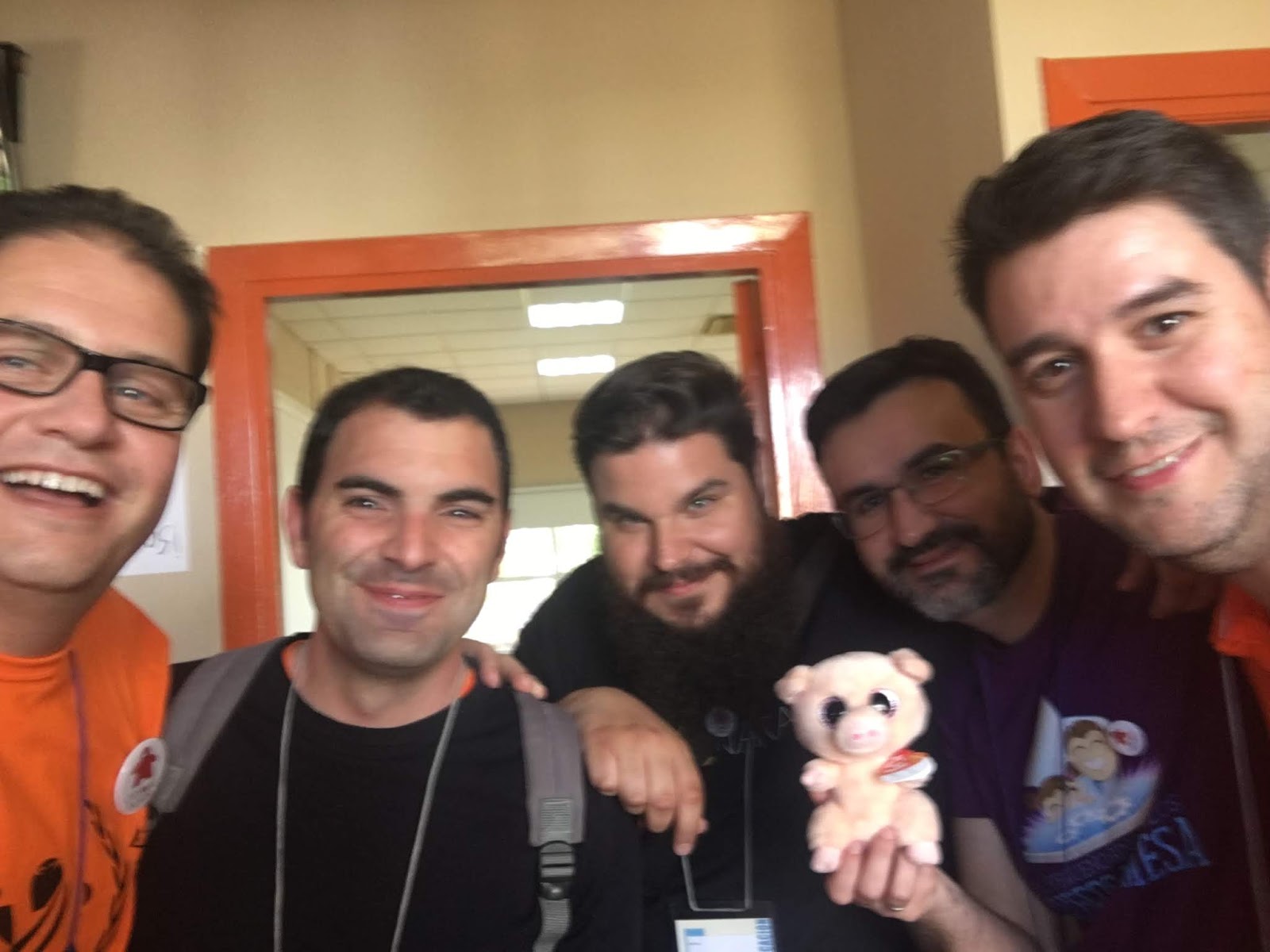 | Con Átomo Games al completo, Dani de tang de naranja y Manu Paradas |